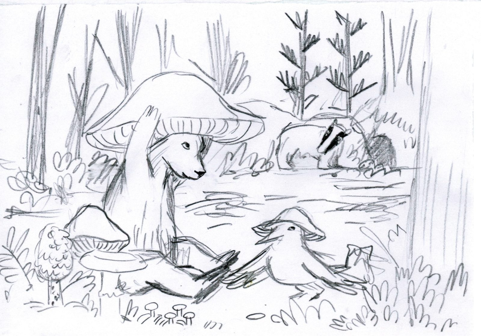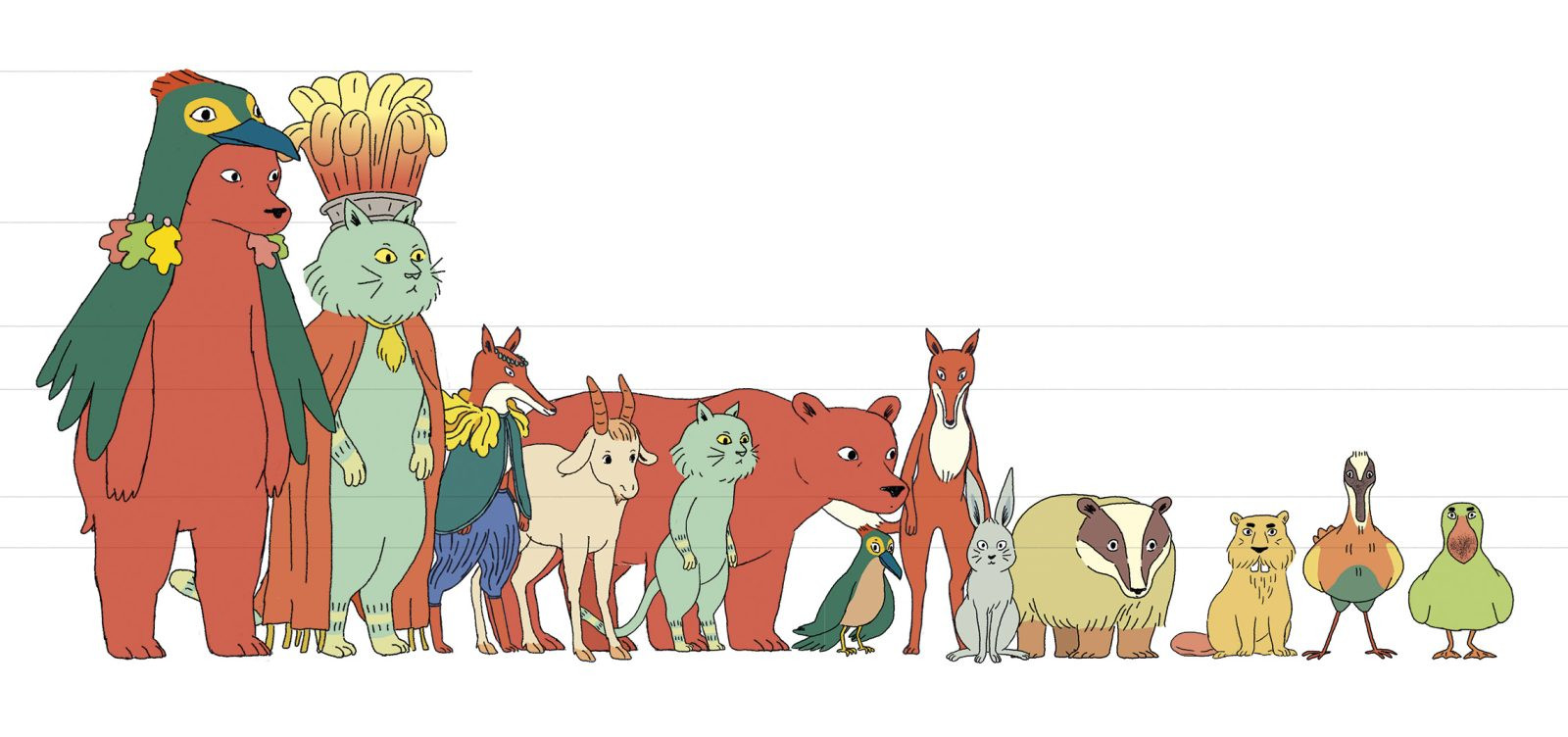 Nous nous sommes inspiré·es de figures qui pourraient composer une famille : un petit castor attaché à l’ordre et aux règles répétées, une blairelle très protectrice et inquiète du monde extérieur, et une renarde comme une grande soeur adolescente, un peu piquante, mais aussi modèle d’émancipation. L’Oiseau possède également ses propres dynamiques, en miroir avec ses deux amis oiseaux, dont l’apparence rappelle celle du castor et de la blairelle. Le lièvre variable est né de notre désir d’offrir un compagnon à l’Ourse, sans prendre la place laissée par l’Oiseau. C’est un ami un peu fou, qui l’accompagne dans les moments difficiles et la fait parfois tourner en bourrique.